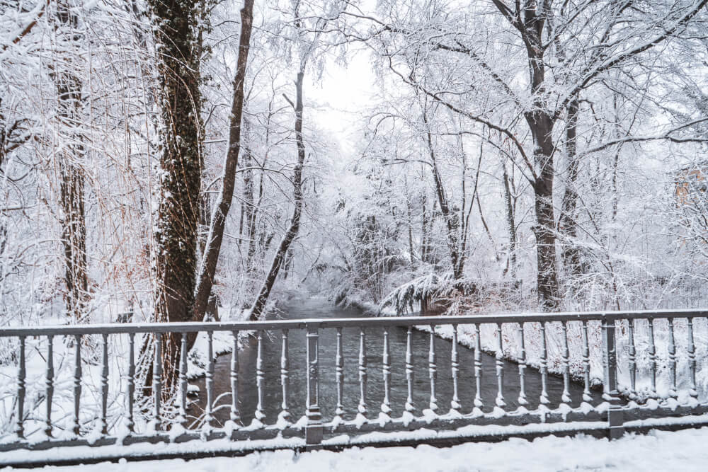 The entire Isar is a winter wonderland when snowfall hits Munich, but our favourite snow-covered monument is the Angel of Peace, which looks amazing framed by snowy white trees. Don’t you agree?