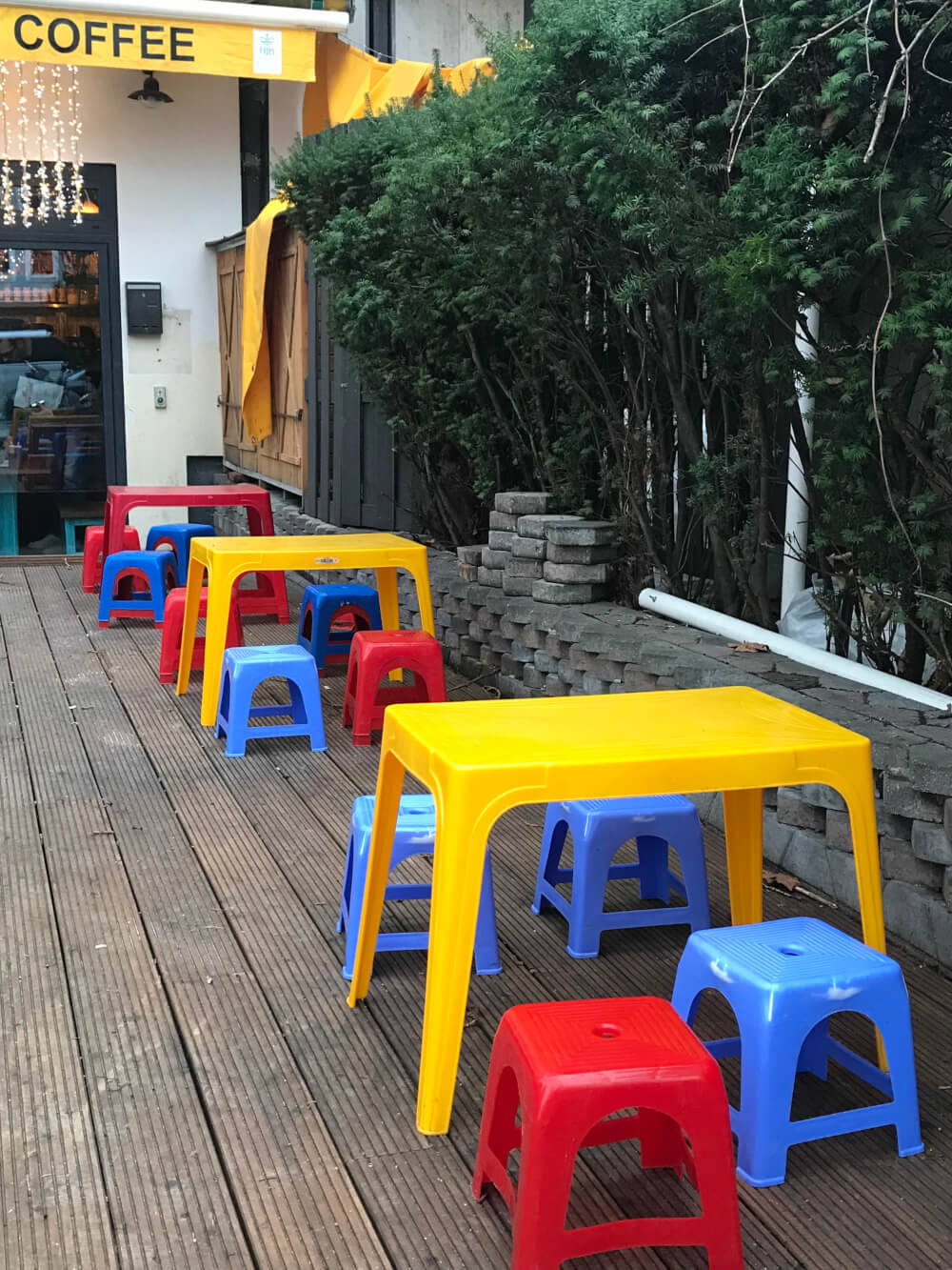 NOTE: Seating consists of stools (both wooden and plastic, if you sit outside) so it’s not the most comfortable if you plan to sit for a long time.