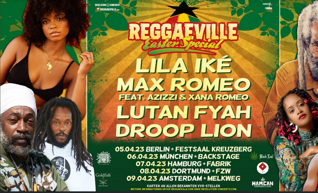 With performances from Lila Ike, Max Romeo (ft. Azizzi & Xana Romeo), Lutan Fyah, and Droop Lion. Reggaeville will be touring through the city on April 6 and it is not a show you want to miss!