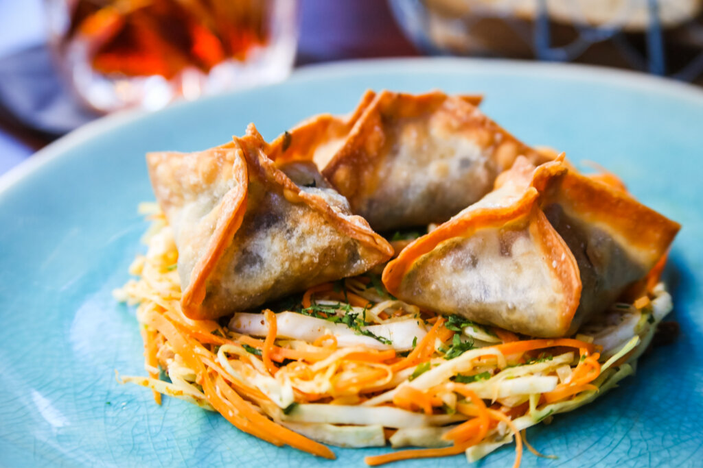 Again, I need to mention that I don’t like mushrooms, especially shiitake mushrooms. Some will say that’s blasphemy, so sue me… HOWEVER, the shiitake mushrooms in these wontons (marinated with glass noodles), were cooked so richly that again, I didn’t have the overpowering taste of earth. It was just the right amount of flavor to get me going in for another taste.
