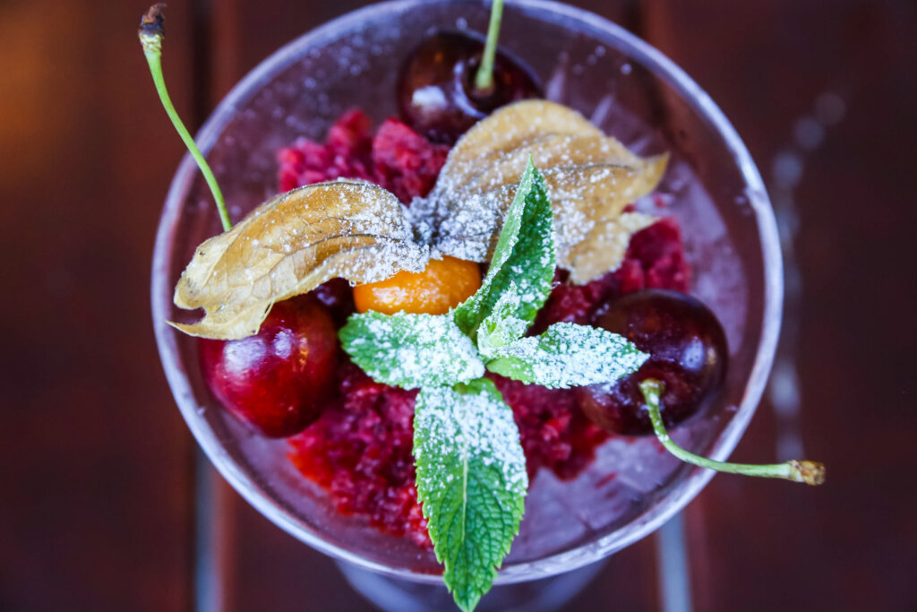 We also had the pleasure of trying their Kirsch-Liebstöckel-GranitĂ©. You’re probably wondering why I didn’t write it in English, well the word doesn’t translate well, at least not well enough to perfectly capture this dessert. It was basically shaved ice, the kind you beg for as a child but with actual flavors and colors from nature. This icy treat was perfect for a hot day, again not too sweet, just the right amount of natural cherry flavor from real cherries.