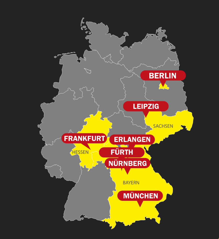 Locations in Munich: Schwabing, Berg am Laim, Giesing, Laim,Neuhausen,Pasing,Perlauch,Neureid, Sendling & Trudering