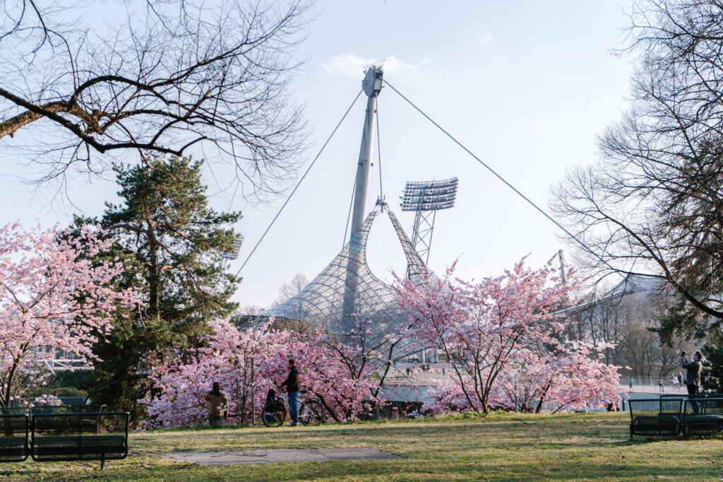 Hands down, the prettiest place to see cherry blossoms in Munich right now is the Olympiapark, where youāll find plenty of bright pink trees in full bloom scattered around the park.