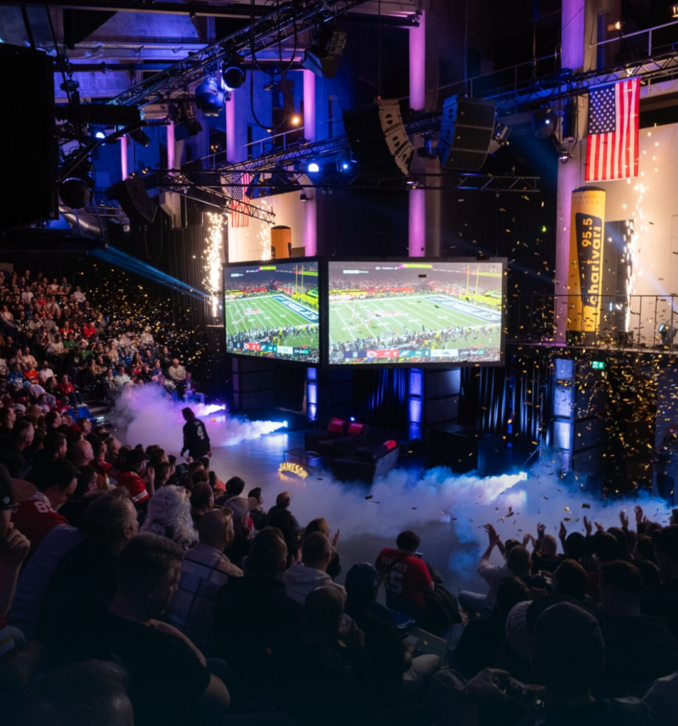 With its industrial-cool interiors and huge screens, WERK7 has become a go-to for major sports nights, including Super Bowl screenings with event-level production.