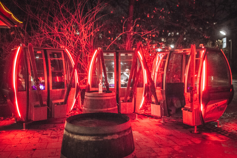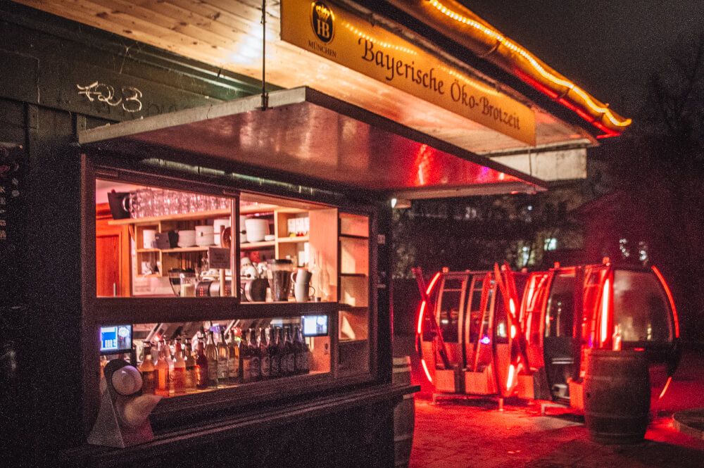 Located just off of the Königinstraße entrance to the English Garden (near the Universität U-Bahn stop), Milchhäusl is an iconic kiosk famous for its 100% bio-only menu, and of course, its wintertime installation of Garmisch-Partenkirchen ski gondolas, which you are free to climb into and warm up with a cozy drink and snack.