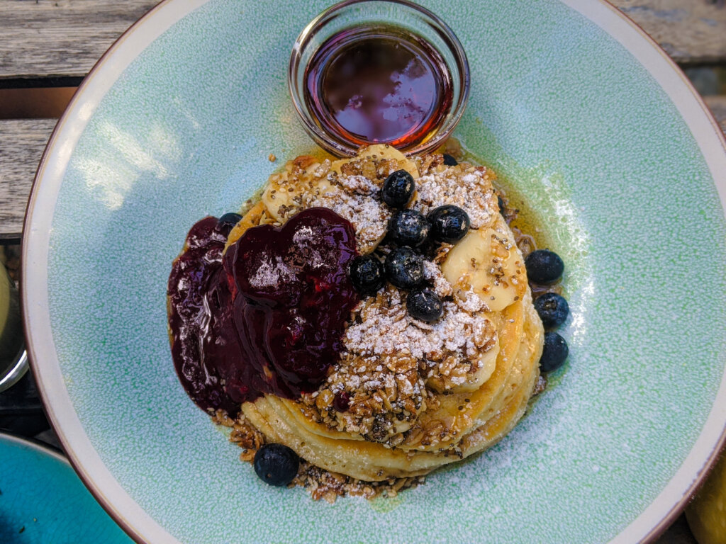 For breakfast, their American style pancakes are honestly some of the fluffiest vegan pancakes I’ve ever had – beating out any non-vegan pancake, and this is coming from an American pancake lover! The pancakes are covered in a thick berry reduction and sprinkled with powdered sugar.