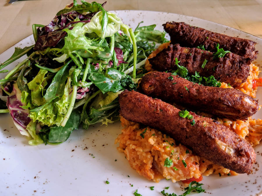 Max Pett is one of Munich’s older vegan restaurants, and it is still one of my favorites. This simple no-fuss restaurant serves everything from German favorites such as Keesespatzle, but with vegan ‘cheese’ to Beyond Meat burgers. They also have a daily special, so there is always something new to try including Vish and Chips.